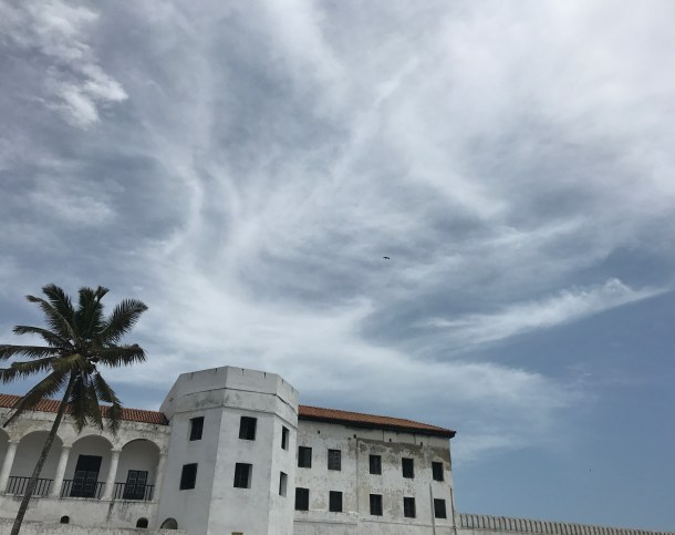 This is obvious, or it should be. I’m not pretending to have insights into the African and African-American experience. I am not presenting myself as any kind of scholar, or as anything but a woman who spent a week visiting her daughter on a semester in Ghana and, while there, bought and read a short book on the slave trade and castles. We visited two: Elmina, built in 1482 and run by the Portuguese, then the Dutch, then the British; and Cape Coast, built in 1653 and held principally by the British.